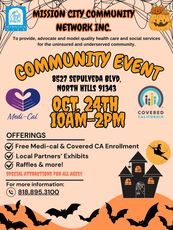 Celebrate with us at MCCN’s Community Event on Oct. 24th, 10 AM–2 PM! Free Medi-Cal & Covered CA enrollment, raffles, exhibits, and fun for all ages!